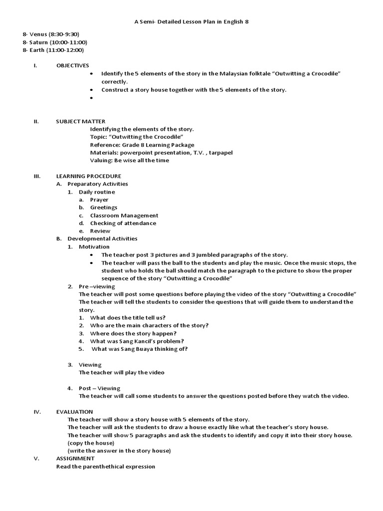 English Lesson Plan Narrative Lesson Plan from imgv2-2-f.scribdassets.com Have students write their legend on lined paper, and illustrate. It also provides an opportunity for students to collaboratively create their own story and apply the formula to their original narrative. About press copyright contact us creators advertise developers terms privacy policy & safety how youtube works test new features press copyright contact us creators. This lesson introduces primary students to the elements of a story that is read aloud. Have students pick a topic and plan their story using the the story elements graphic organizer printable. One for introduction, one for application. Jul 31, 2020 · whether you teach several subjects or teach in a specific content area, lesson plans matter. Have students edit and revise their stories with a partner, or with you or another instructor.